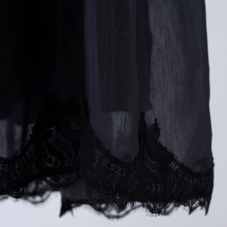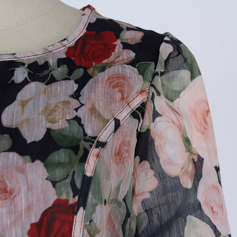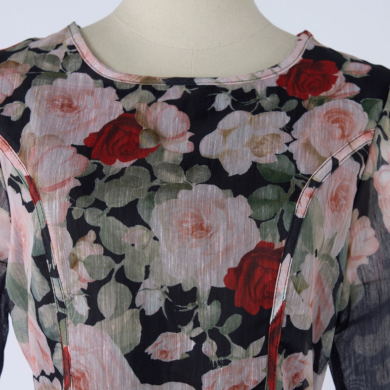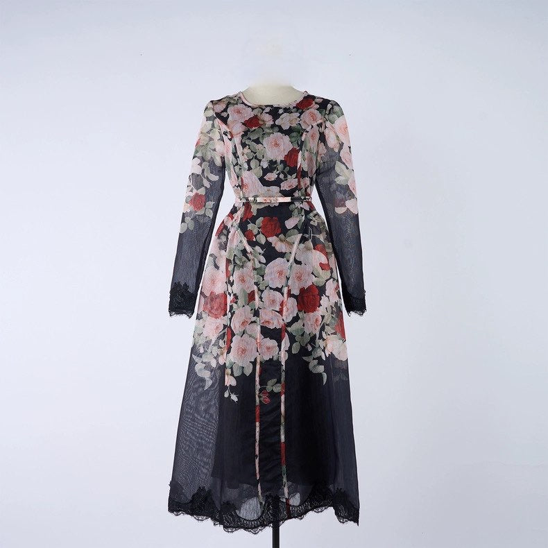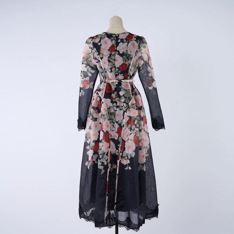 Maniche lunghe a sbuffo, cintura tono su tono.
