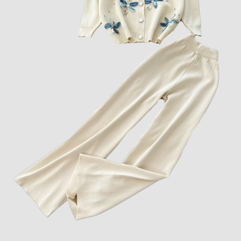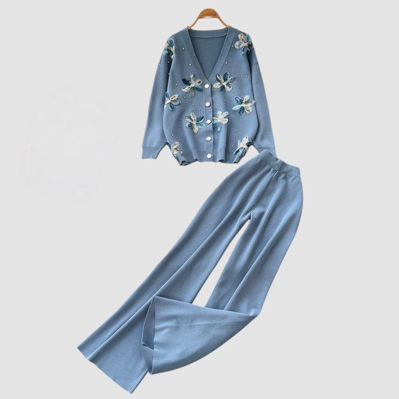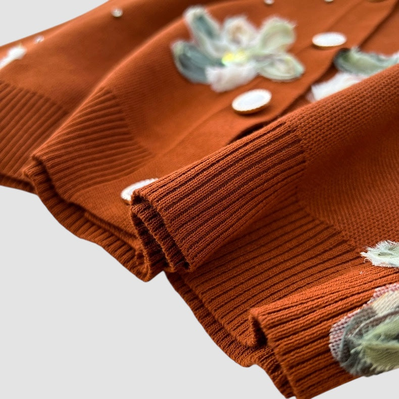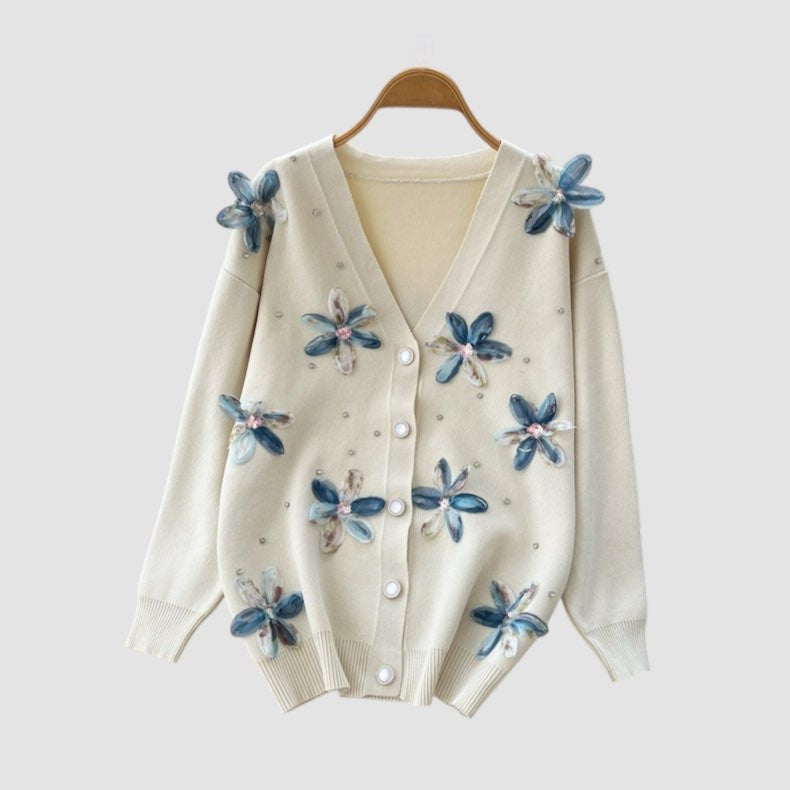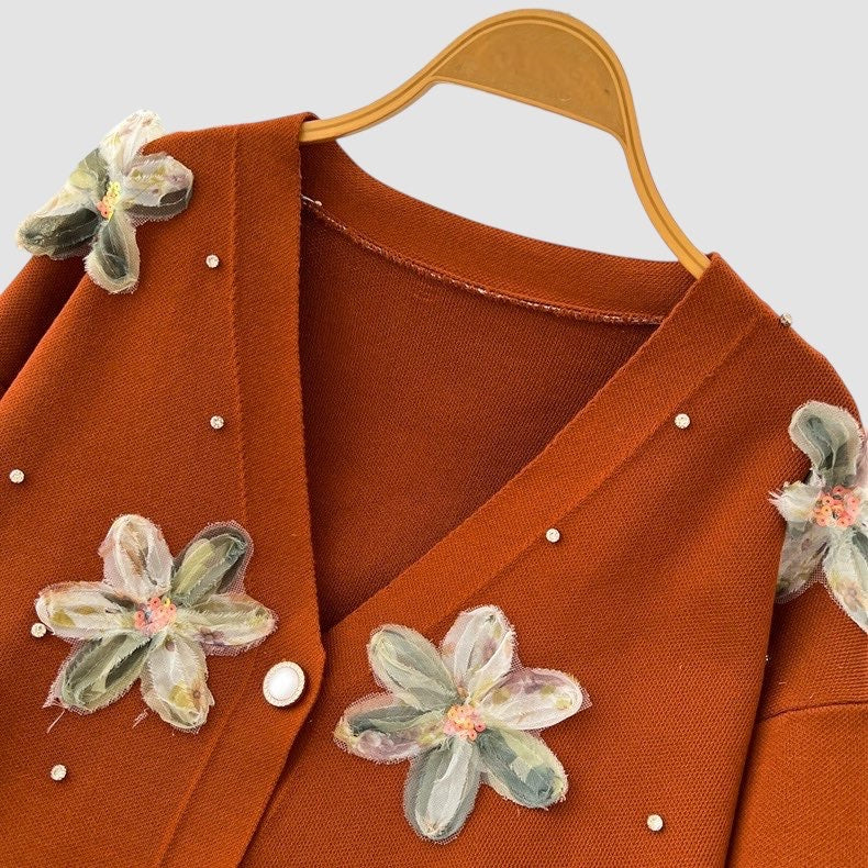 Cardigan con manica lunga, fiori 3D e chiusura con bottoni;