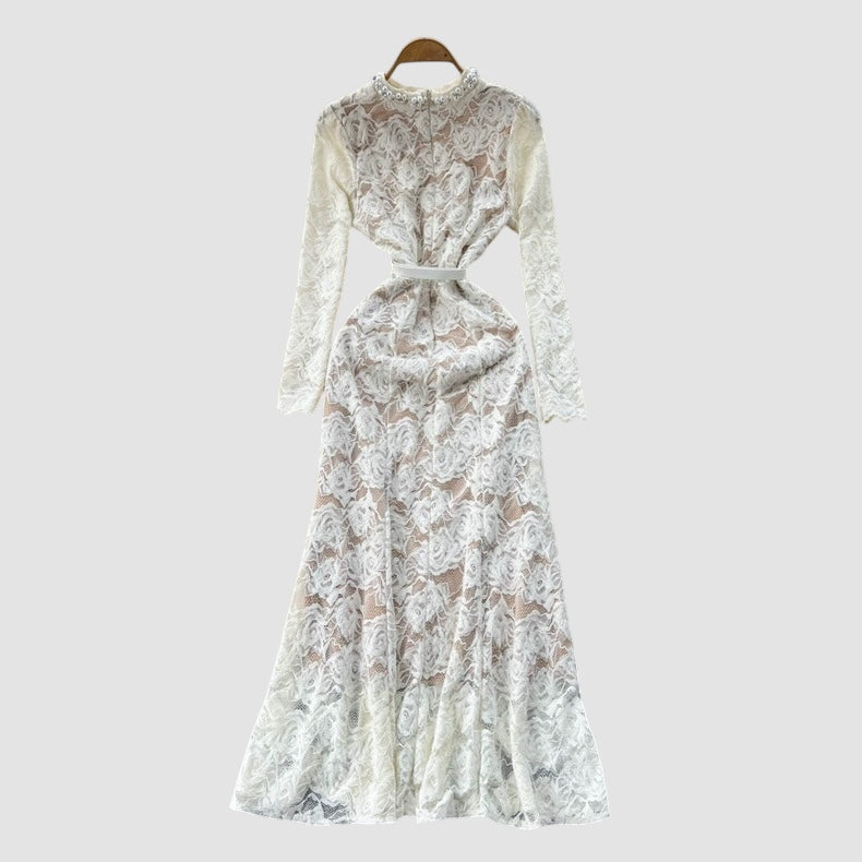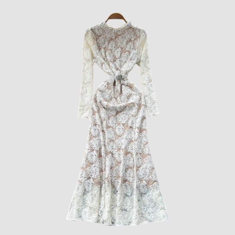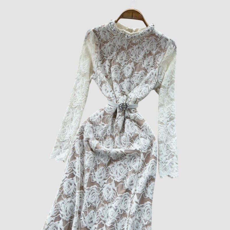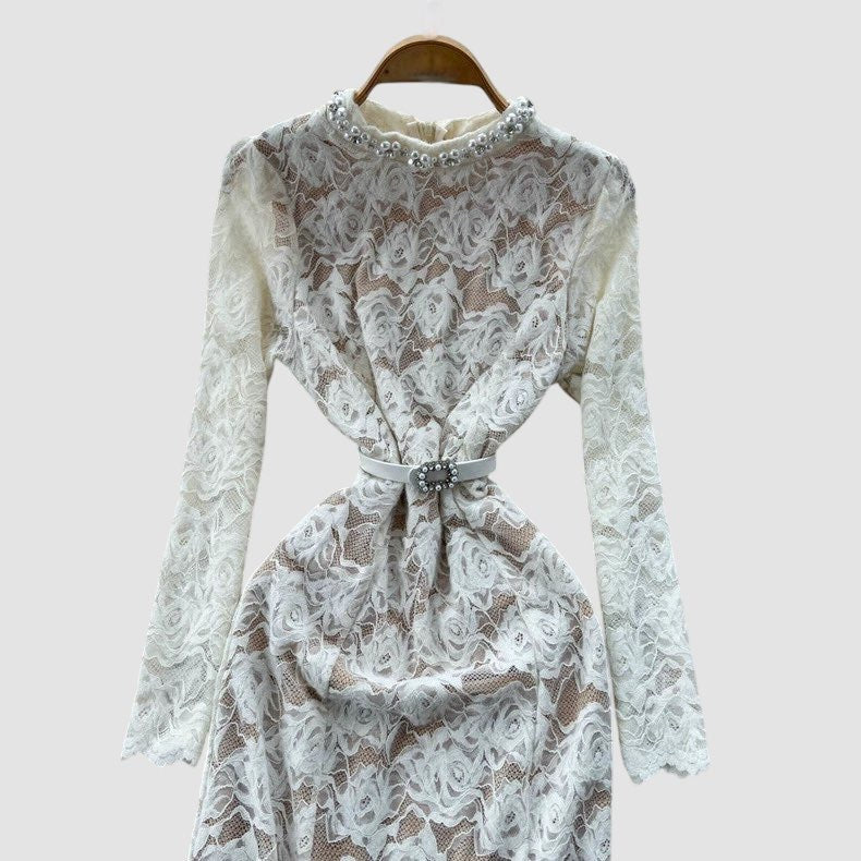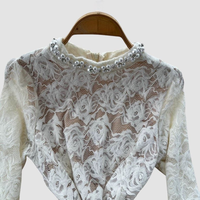 Dettagli con perle, manica lunga ;