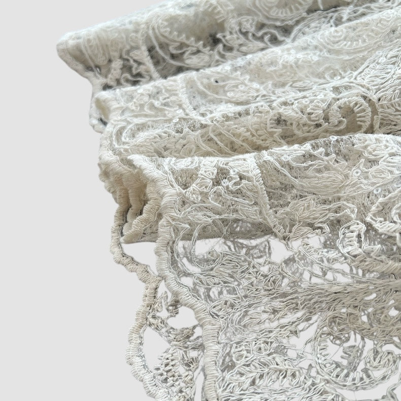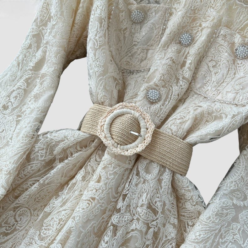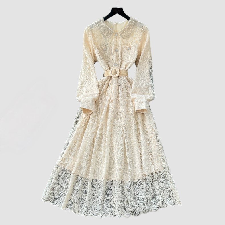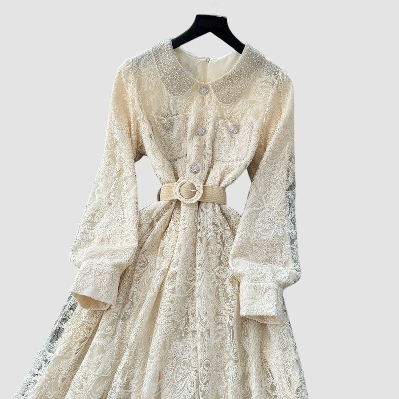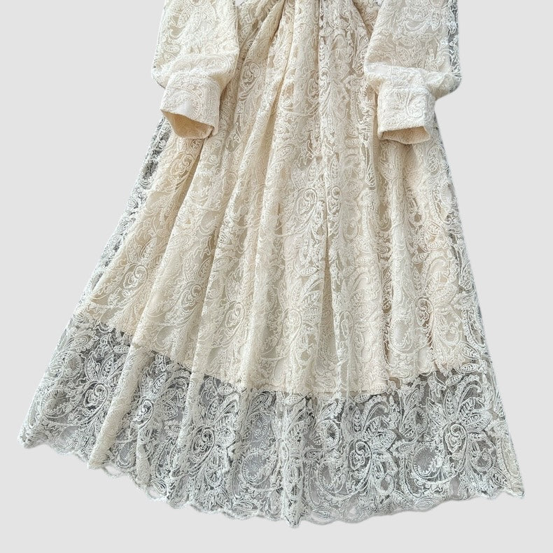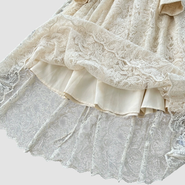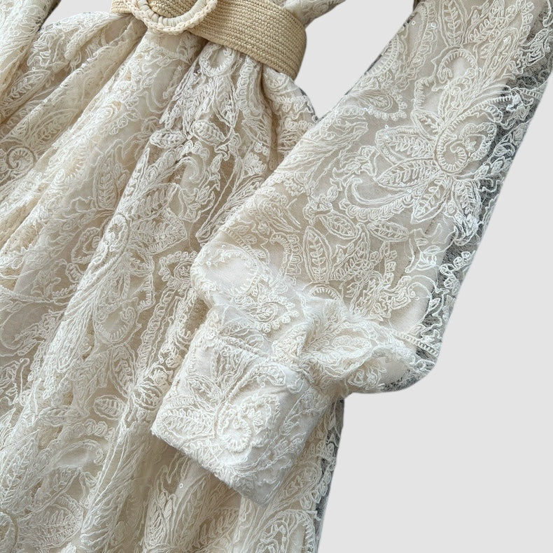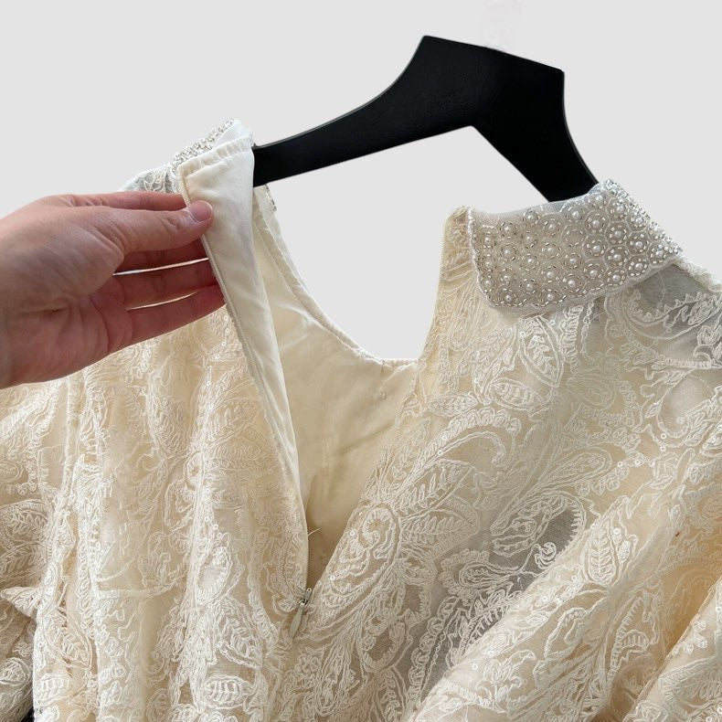 Abito in pizzo con manica a sbuffo, foderato;