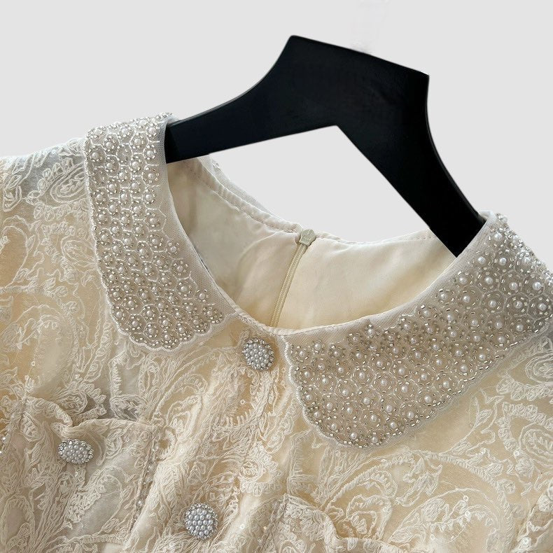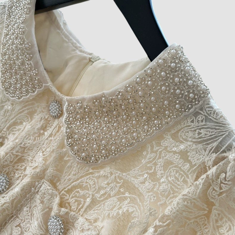 Colletto con perline e bottoni gioiello.